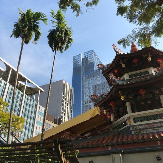 I arrived at my hotel around 9 am, and thank heavens had thought ahead to make a spa reservation since my room wouldn’t be ready until after noon. So I had myself a little steam, a massage, and lunch and a glass of wine by the pool, then voila! Room was ready. I unpacked, showered, and decided to head to Chinatown. I’m so glad I went there first – it’s such a cool juxtaposition of old and new, temples in the foreground and skyscrapers in the background everywhere you look.