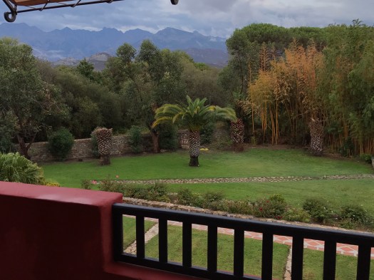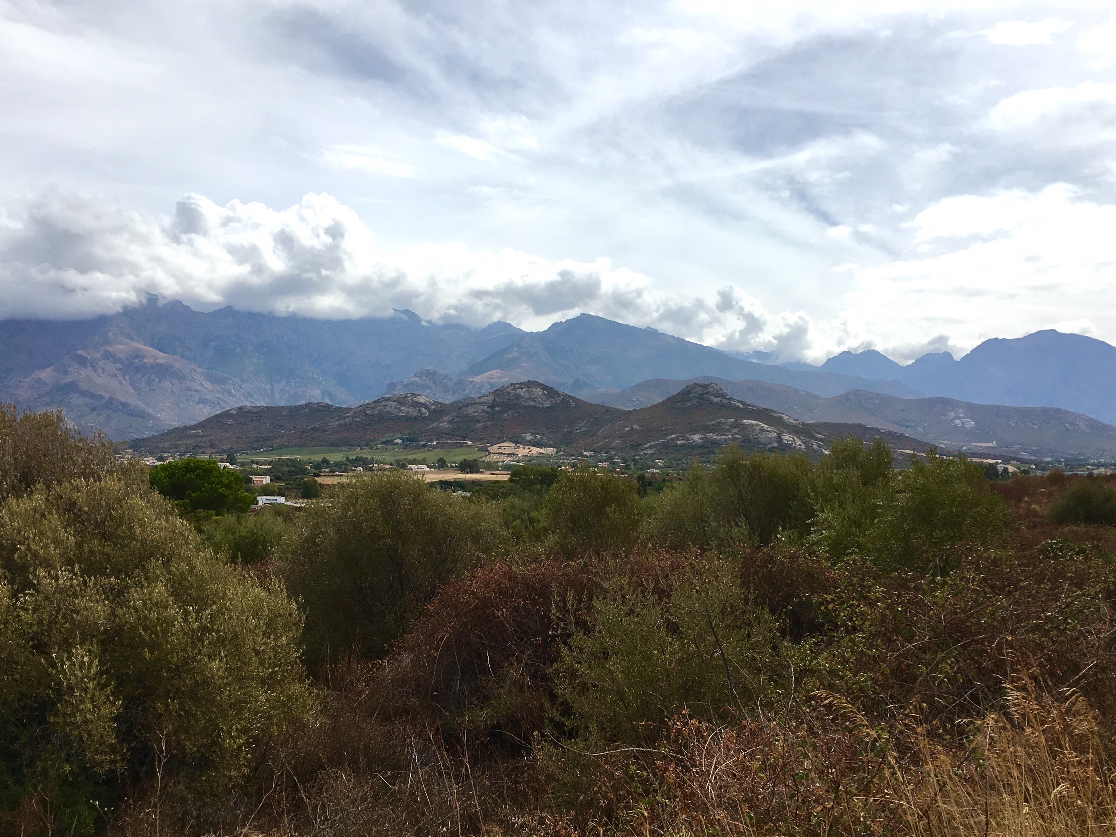 The island is far more mountainous than I thought it would be, and the mountains being so close, along with the overcast weather and the fact that I have read way too many Daniel Silva spy novels featuring a Corsican assassin, lend the place a slightly mysterious feeling. Here’s the view from my little balcony: